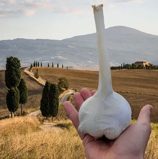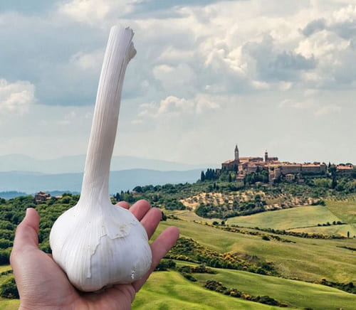 Aglio Golia nasce nei campi della Val d'Orcia Senese, patrimonio Unesco dal 2004, cartolina della Toscana.